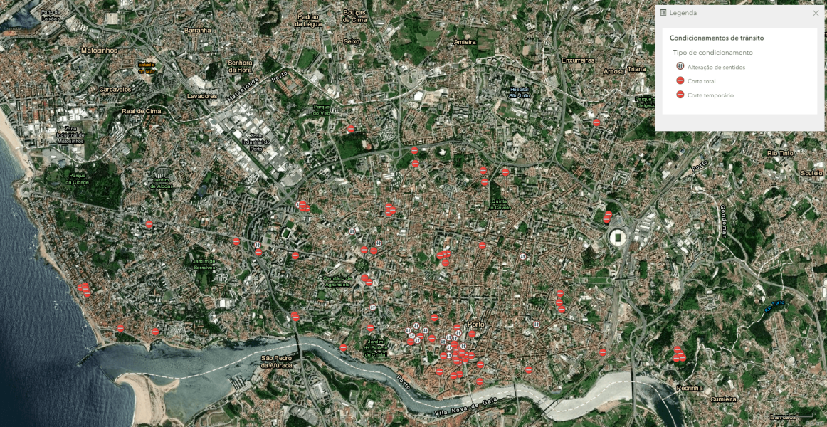Veja em tempo real os condicionamentos na Plataforma de Trânsito do Município do Porto.