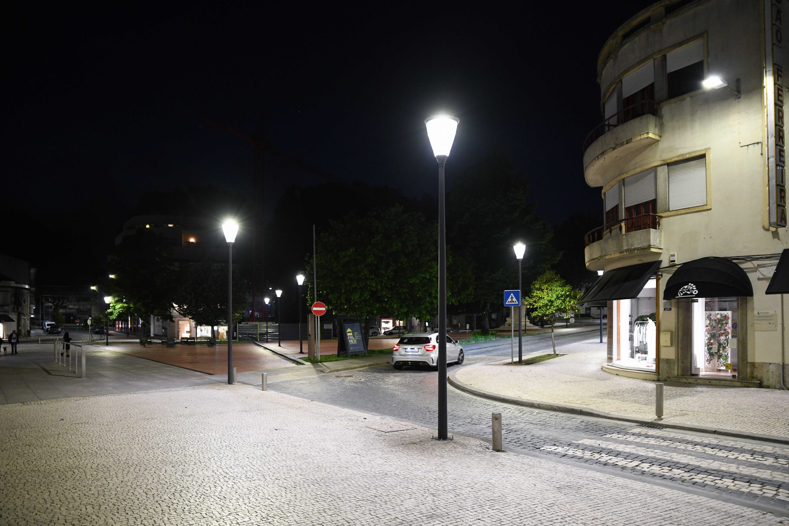 A intervenção, que implicou a substituição da iluminação existente por tecnologia LED, a colocação de novos pontos, a requalificação das luminárias existentes, incidiu na Rua Daniel dos Santos, Rua de Santo António, Praça 9 de Abril, Rua Direita e Praça Manuel Sottomaior.