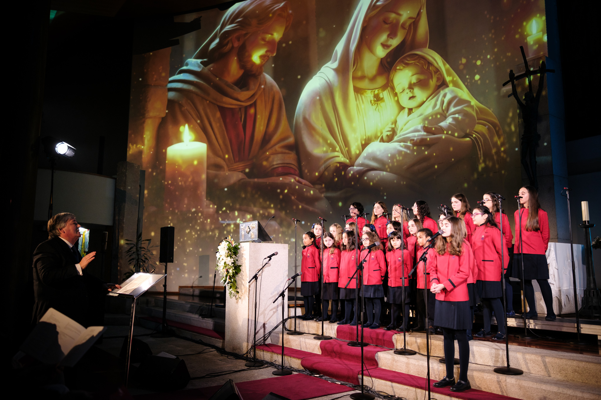 “Quando nasce uma amizade” e “Ousamos sonhar”, obra que o dueto constituído pela autora Mizé Rouxinol e pelo compositor Victor Sampaio Dias, criou para assinalar os 500 anos do Foral da Maia. No bloco final de três temas que encerraram o concerto, juntaram-se aos Pequenos Cantores da Maia, o Coro dominical da Paróquia, denominado Maia 19 e vários pais dos artistas do Coral Infantil Municipal, interpretando “Livres para servir”, Hino Oficial da MAIA CAPITAL EUROPEIA DO VOLUNTARIADO 2026, com Poema de Mizé Rouxinol e Música de Victor Sampaio Dias, terminando com “caminho de Paz”, com letra da mesma autora e Música de Victor Sampaio Dias e Ana Margarida Rouxinol. Por sua vez, o encore, “Desejamos um Bom Natal” foi igualmente cantado em comunidade com a participação do grande coro formado para o efeito, com a preciosa colaboração de António Alves Ferreira, regente do coro Maia 19.